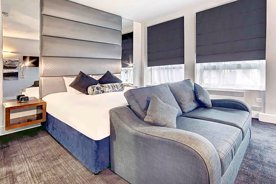 This room has a king-size bed, a small fridge, tea/coffee making facilities, a hairdryer, an iron and ironing board, and an private bathroom with designer toiletries.